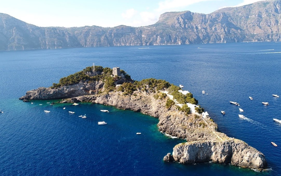 Frente a la costa italiana de Amalfi se encuentra Gallo Lungo, la mayor de las Islas Sirecusas. Es la más bella y asombrosa. Su nombre, que hace alusión a un gallo, no permite predecir que la forma de esta porción de tierra firme es la de un delfín.