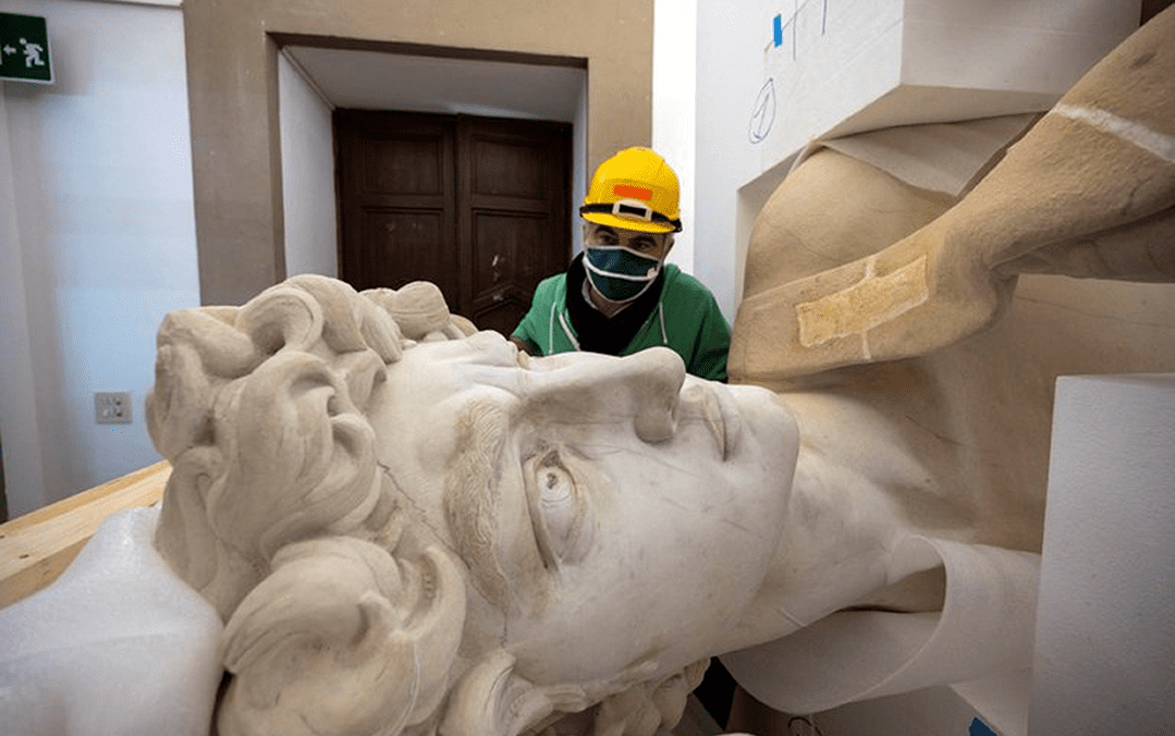 A través de una digitalización sofisticada se logró una impresión 3D de 14 piezas. Tiene exactamente las mismas dimensiones que el original y está hecho con resina acrílica cubierta con polvo de mármol.