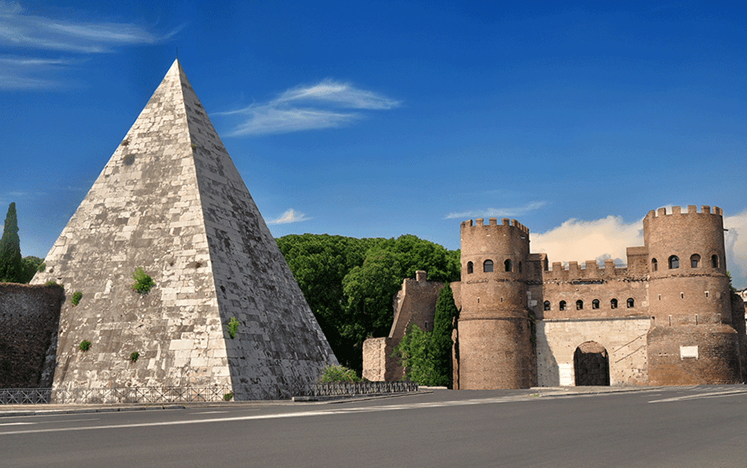La Pirámide de Cestia es uno de los monumentos más antiguos y tal vez menos conocidos de Roma. Tiene casi 40 metros de altura y fue construida entre los siglos 18 y 12 A.C. para alojar la tumba del pretor Cayo Cestio Epulón.